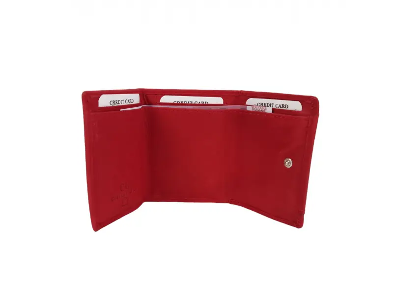 Poșetă compactă pentru femei - Poșetă de damă confecționată din piele naturală. - Închidere cu nasture tic-tac. - Compartimente pentru carduri. - Compartiment pentru bancnote. - Monedă cu buton de bifare - da.