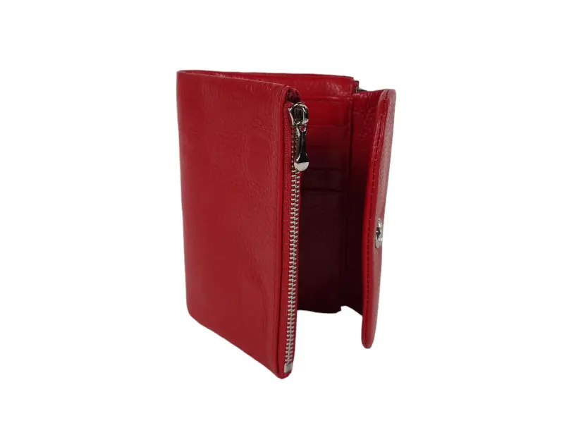 Poșetă frumoasă pentru femei - Poșetă de damă confecționată din piele naturală. - Închidere magnetică. - Compartimente pentru carduri. - Compartimente pentru bancnote. - Compartiment cu fermoar. - Buzunar exterior pentru monede cu fermoar.