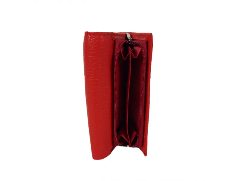 Poșetă din piele pentru femei - Poșetă de damă confecționată din piele naturală. - Închidere cu un buton de clic. - Compartimente pentru carduri. - Compartiment pentru bancnote. - Compartiment cu fermoar. - Buzunar exterior pentru monede cu fermoar.
