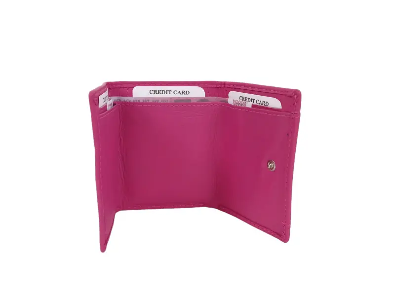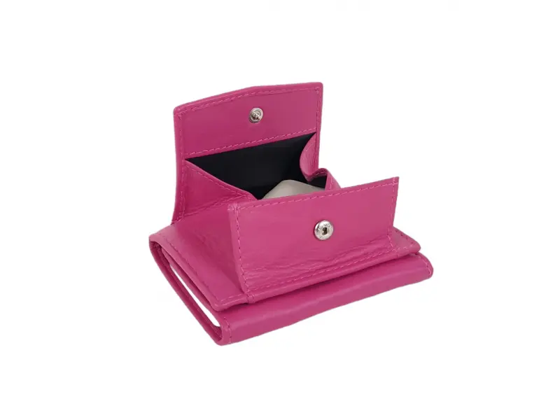 Poșetă din piele pentru femei, într-o culoare roz unică - Poșetă de damă confecționată din piele naturală. - Închidere cu nasture tic-tac. - Compartimente pentru carduri. - Compartiment pentru bancnote. - Monedă cu buton de bifare - da.
