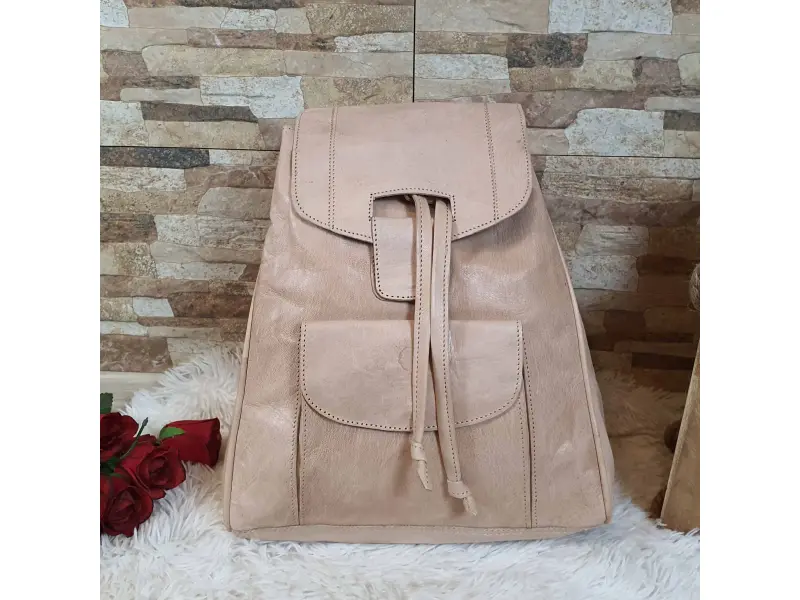Rucsac de damă din piele - Uoran. Rucsac de damă maro, confecționat din piele naturală, importat din Maroc. Rucsac confortabil de damă cu multe compartimente, mâner de transport și bretele reglabile. - ePazar.bg