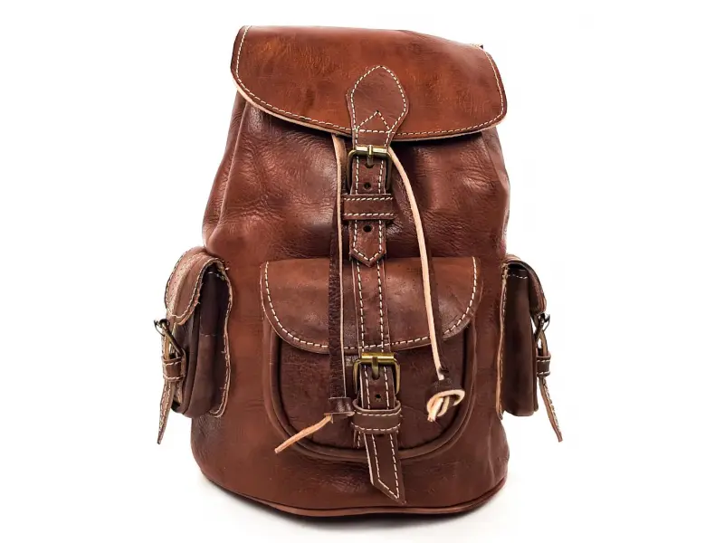 Rucsac marocan de calitate medie. Rucsac de damă din piele naturală. Rucsac marocan mediu de culoare maro, realizat manual fără substanțe chimice, de la magazinul online ePazar.bg