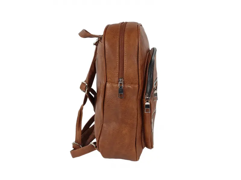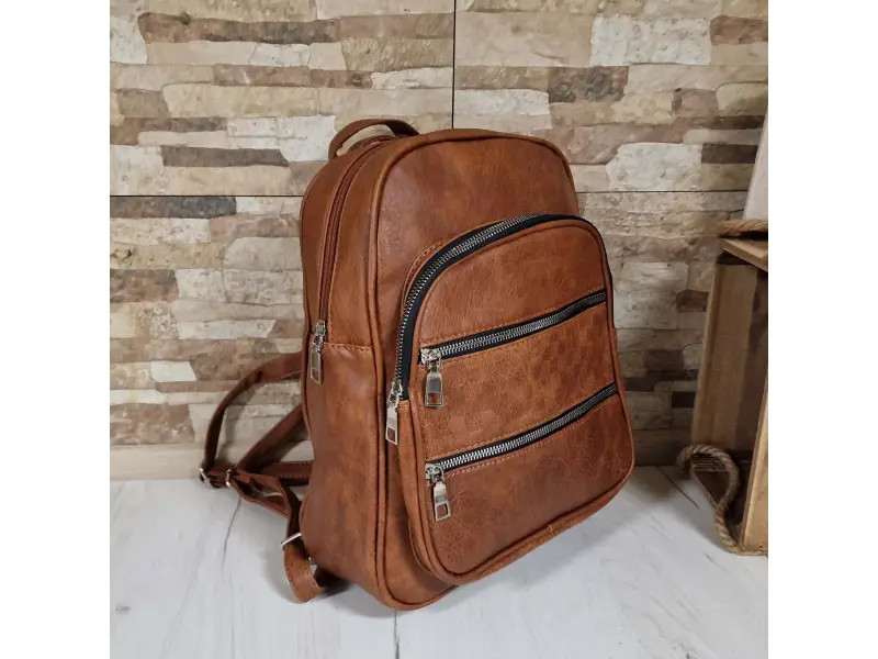 Rucsac interesant pentru femei - Rucsac de damă confecționat din piele ecologică. - Un compartiment mare cu fermoar. - Buzunar interior cu fermoar. - Trei buzunare frontale cu fermoar. - Mâner pentru transport în mână. - Bretele reglabile.