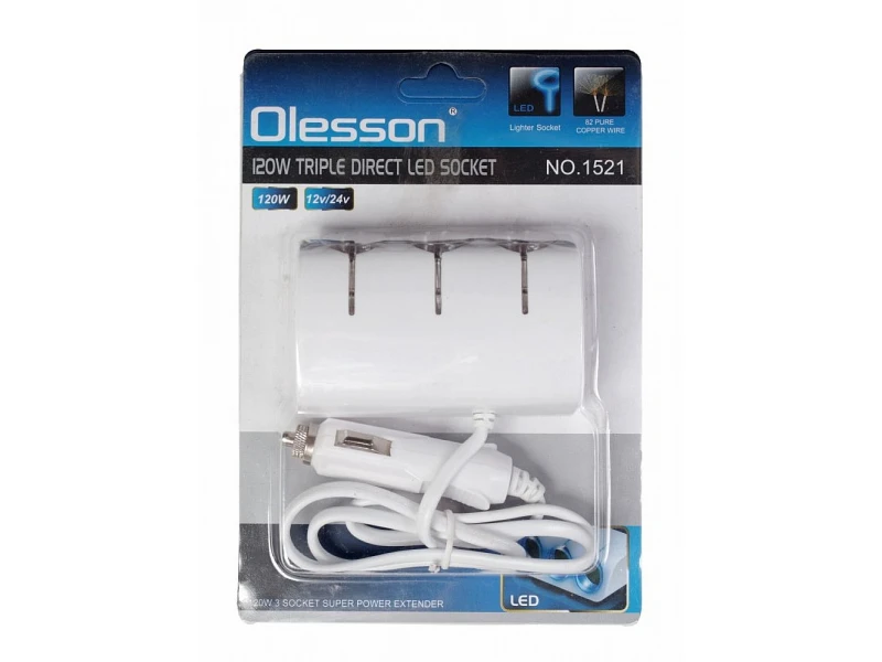Priză brichetă Olesson 1521 cu cablu, 3 prize