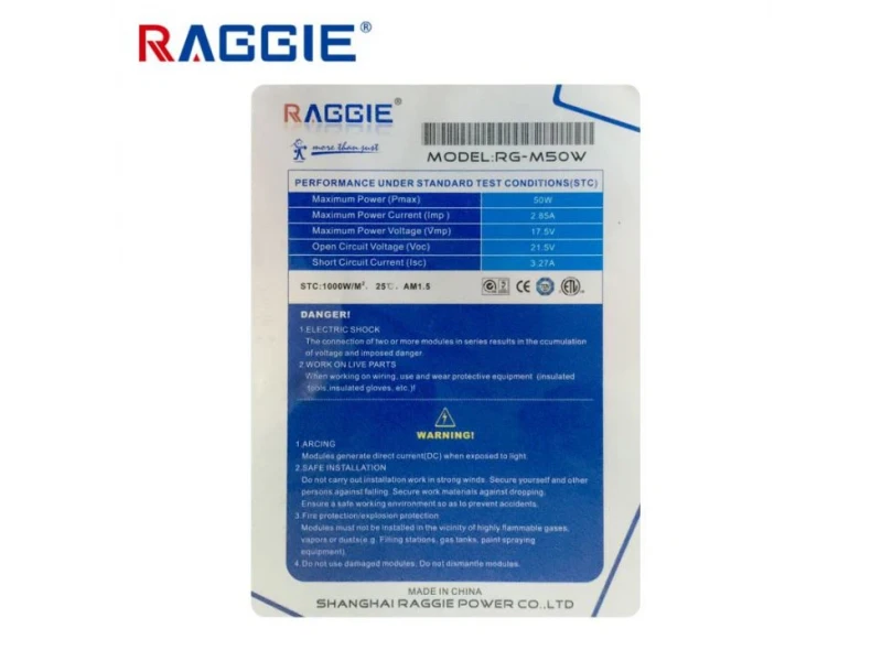 Panou solar monocristalin 50W RAGGIE 12V 700x540x25mm.