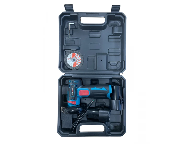 Polizor unghiular fără fir, fără perii, cu un diametru de 76 mm. Ideal pentru tăierea și șlefuirea lemnului, metalului, plasticului și a altor materiale. Are un LED pe mâner care indică nivelul de încărcare al bateriei. Mașina este ușoară, compactă și ușor de utilizat cu o singură mână. Specificații: Tensiune: 12V Baterii Li-ion 1,5 mAh – 2 bucăți Încărcător: 220V Turație de mers în gol: 19.500 rpm. Diametrul discului: 76 mm Filet ax: M5 Schimbare disc: hexagonal standard Greutate: 660 g.