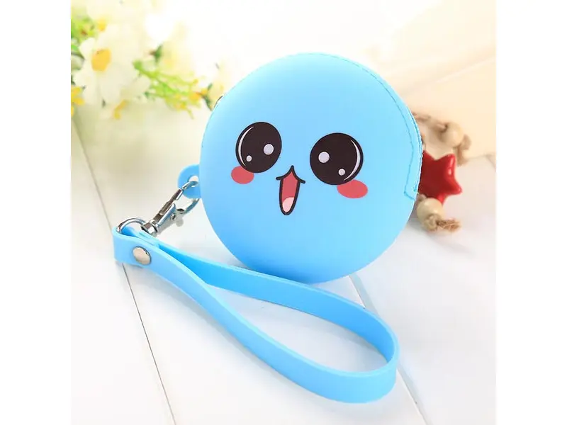 Portofel pentru copii din silicon, de culoare albastră, cu un compartiment închis cu fermoar. Portofel cu mâner pentru mână.