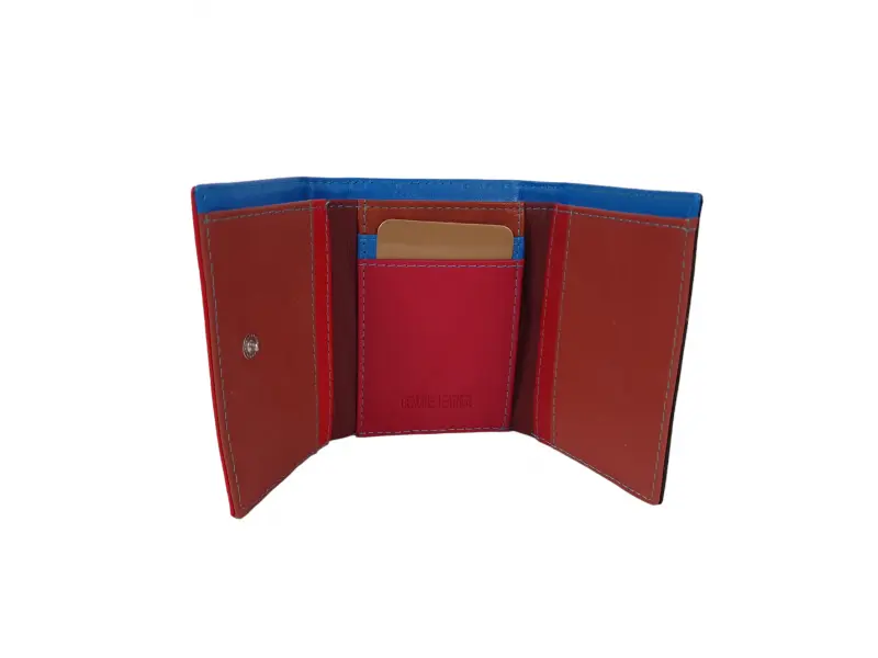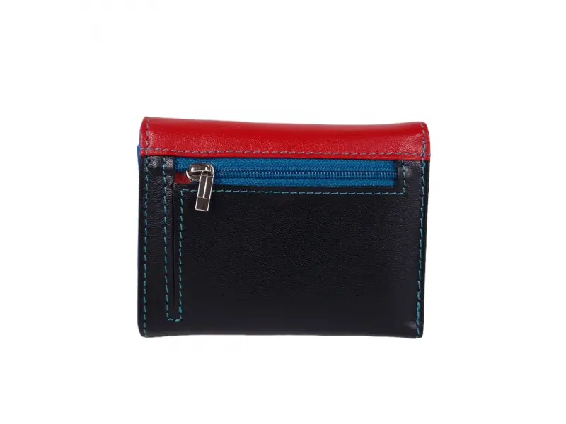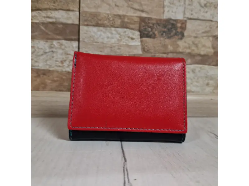 Poșetă multicoloră pentru femei - Poșetă de damă confecționată din piele naturală. - Închidere cu un buton de clic. - Compartimente pentru carduri. - Compartiment pentru bancnote. - Buzunar spate cu fermoar.