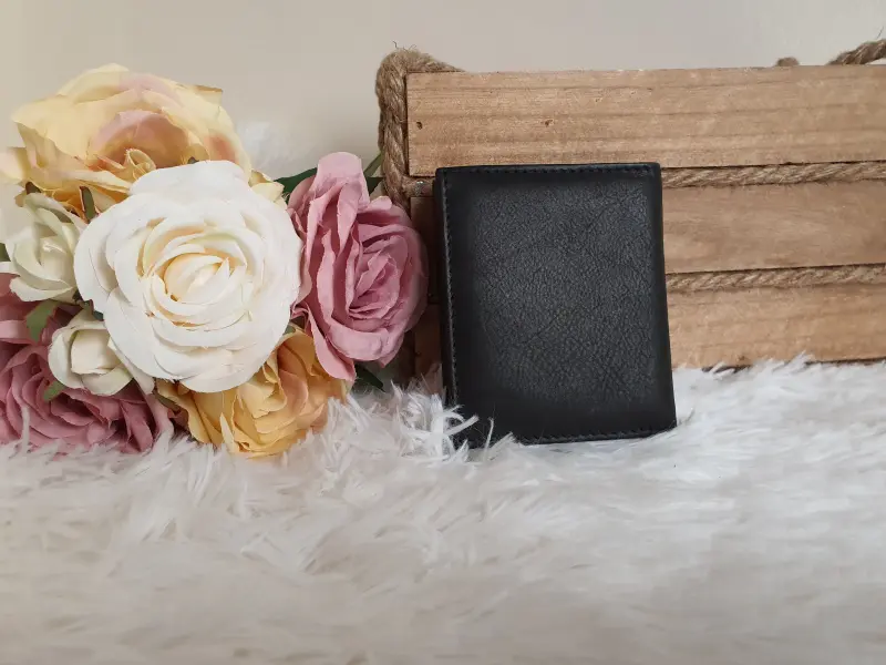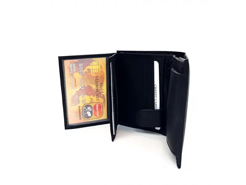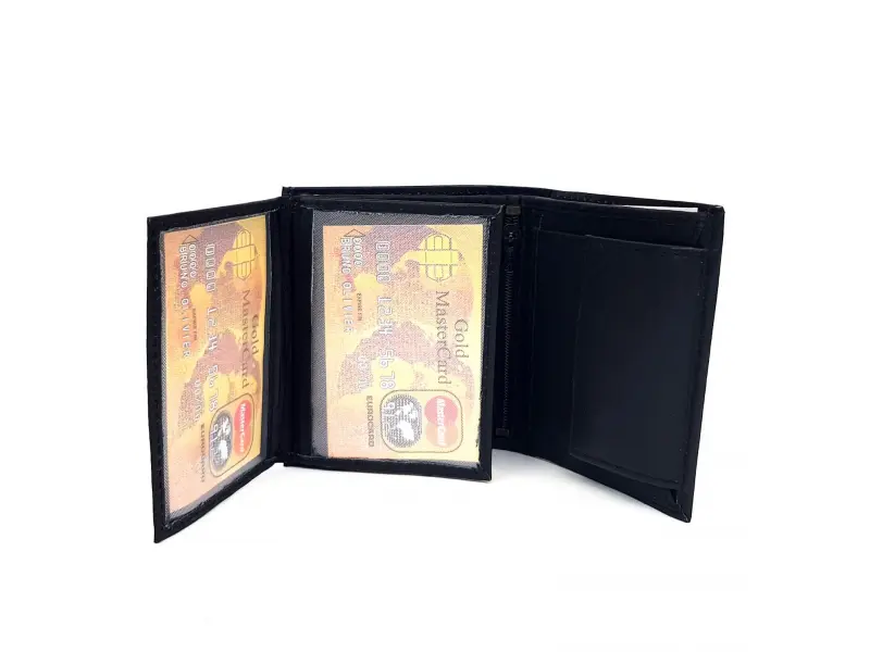 Portofel mic - piele naturală. Portofel compact din piele naturală, potrivit atât pentru bărbați, cât și pentru femei. Portofel negru confortabil cu multe sloturi pentru carduri - ePazar.bg.