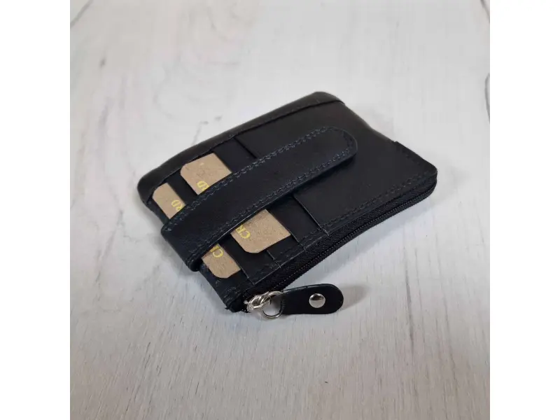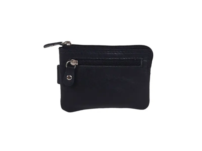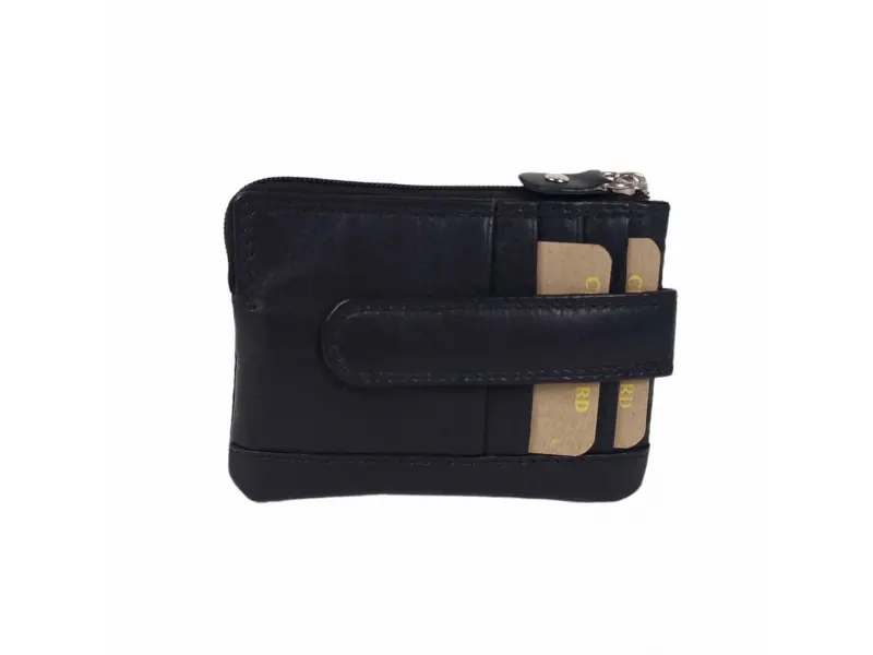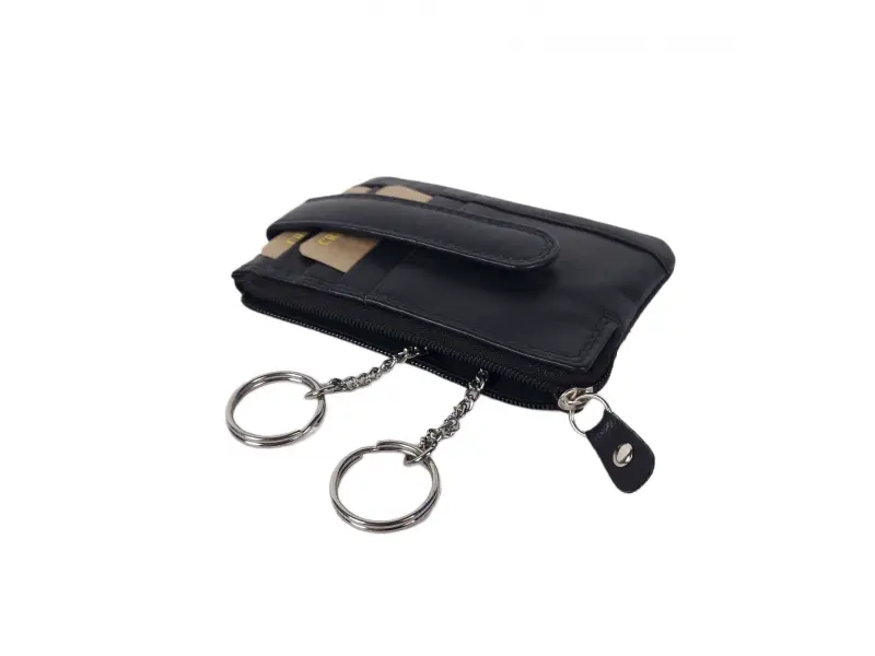 Portofel de calitate - breloc negru - Poșetă din piele naturală cu inel de chei. - Compartiment pentru bancnote. - Compartiment pentru monede. - Compartiment pentru carduri și documente personale. - Două inele pentru agățarea cheilor.