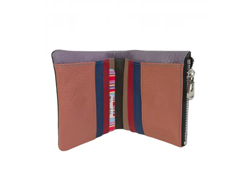 Poșetă mică de damă din piele cu magnet - Poșetă de damă confecționată din piele naturală. - Închidere magnetică. - Compartimente pentru carduri. - Compartimente pentru bancnote. - Buzunar exterior pentru monede cu fermoar.
