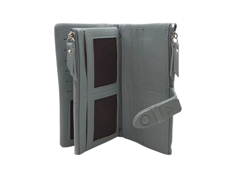 Poșetă elegantă pentru femei - Portofel de damă confecționat din piele ecologică. - Închidere cu un buton de clic. - Compartimente pentru carduri și documente personale. - Compartiment pentru bancnote. - Compartimente pentru monede cu fermoar.