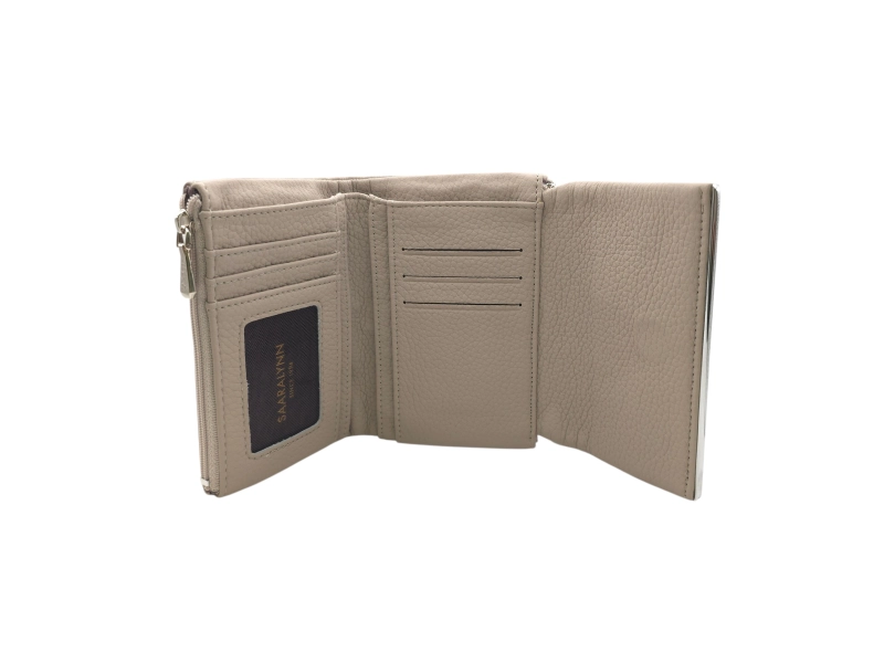 Un portofel modern pentru femei, cu un design interesant, confecționat din piele artificială de calitate. Un portofel practic pentru femei, cu compartimente convenabile pentru bancnote, carduri și monede. Un portofel mic pentru femei, cu închidere magnetică.