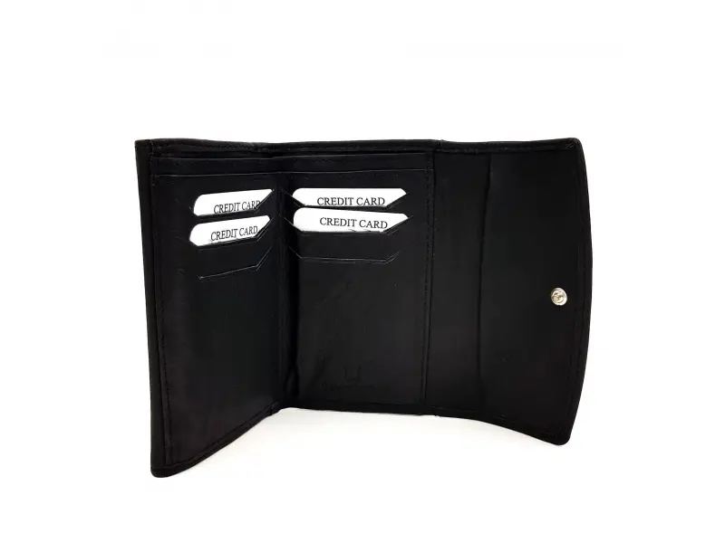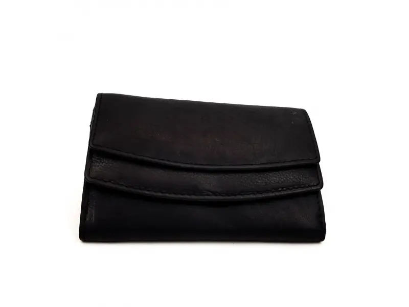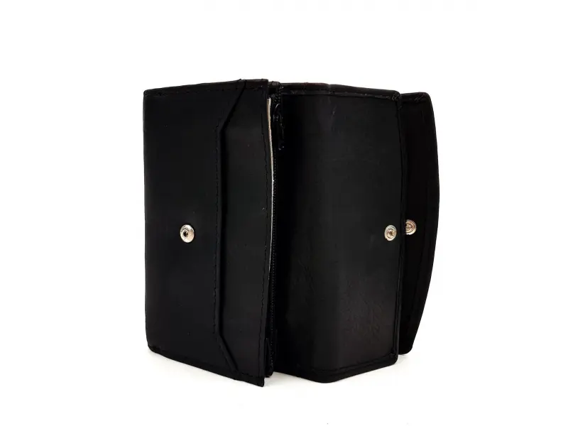 Portofel compact pentru femei - negru. Portofel negru confortabil pentru femei, confecționat din piele naturală. Portofel negru confecționat din piele de calitate, moale la atingere, importat din India - ePazar.bg
