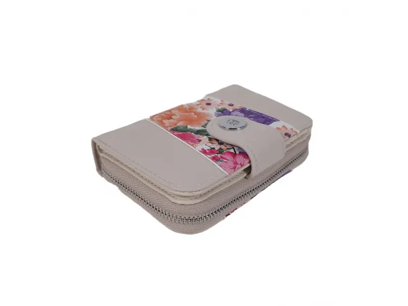 Poșetă confortabilă pentru femei cu flori - Portofel de damă confecționat din piele ecologică. - Închidere cu buton magnetic. - Compartimente pentru carduri și documente. - Compartiment pentru bancnote. - Compartiment pentru monede cu fermoar. - Aranjamentul florilor poate fi diferit.