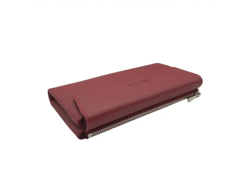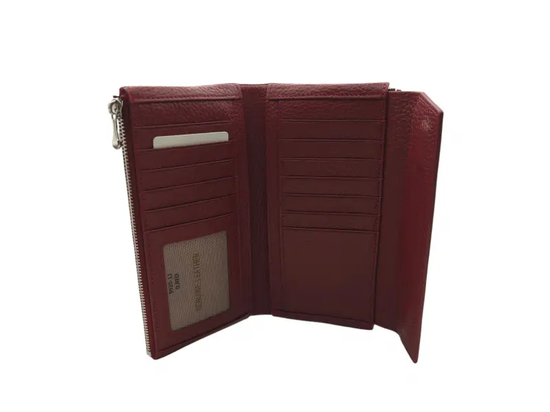 Portofel mare pentru femei, confecționat din piele naturală de calitate, cu închidere magnetică. Portofel din piele cu compartimente practice pentru bancnote, carduri și documente personale și un buzunar pentru monede cu fermoar.