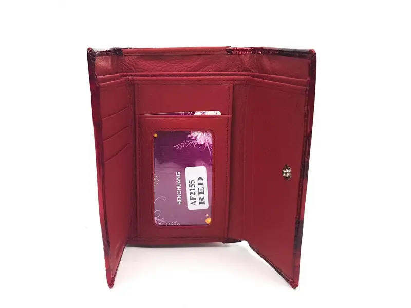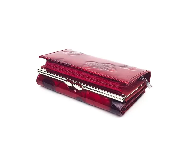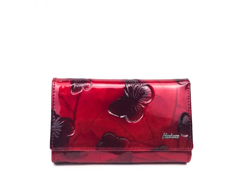 Poșetă de damă din piele lăcuită - fluturi roșii. Poșetă medie de damă din piele lăcuită, confecționată din piele naturală cu fluturi gravați. Poșetă de damă excelentă de la ePazar.bg