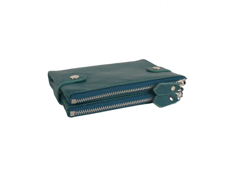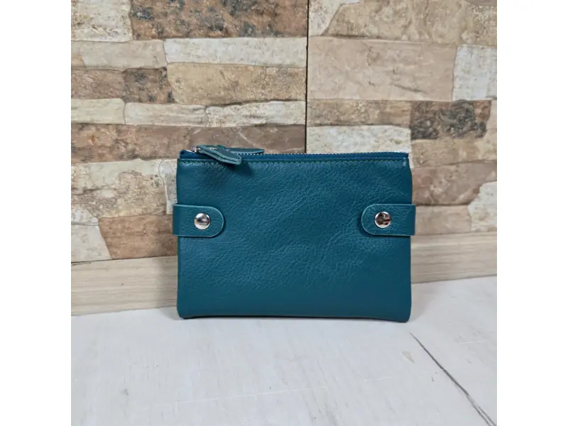 Poșetă medie pentru femei - Poșetă de damă confecționată din piele naturală. - Închidere cu nasturi tic-tac. - Compartimente pentru carduri. - Compartiment pentru bancnote. - Două buzunare cu fermoar.