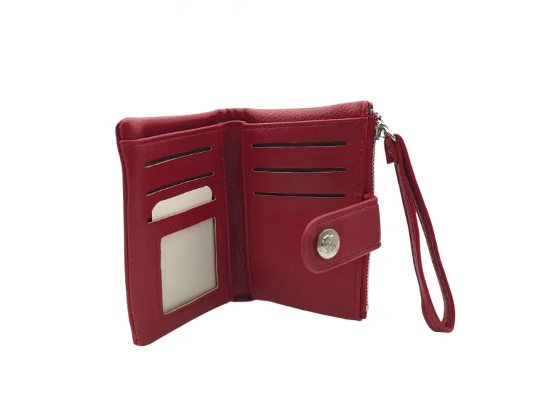 Poșetă de damă model nou - Portofel de damă confecționat din piele ecologică. - Închidere cu un buton de clic. - Compartimente pentru carduri. - Compartiment pentru bancnote. - Buzunar pentru monede cu fermoar.