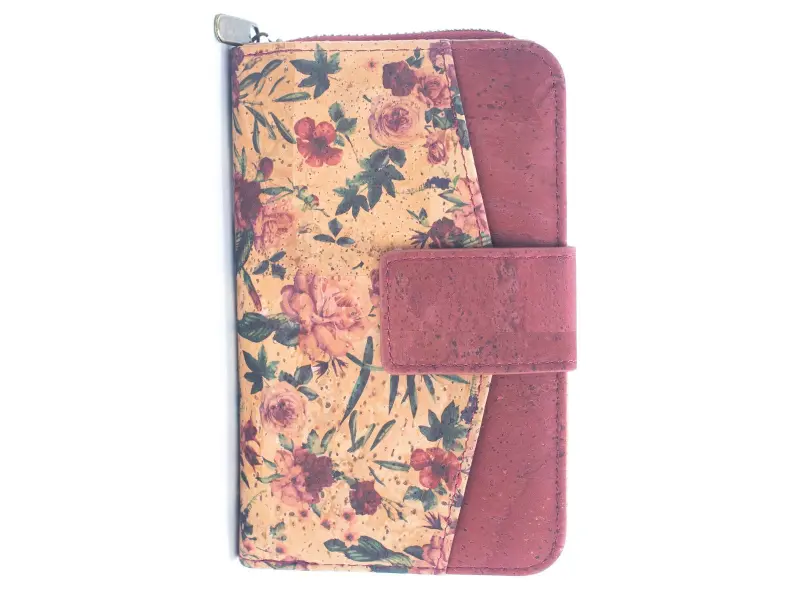 Poșetă de damă cu flori Portofel de damă de înaltă calitate, fabricat din material ecologic - plută. Portofel confortabil pentru femei, cu închidere și buzunar exterior pentru monede cu fermoar, compartiment pentru monede și un buzunar mic pentru monede cu fermoar, numeroase sloturi pentru carduri și documente și un compartiment pentru bancnote.