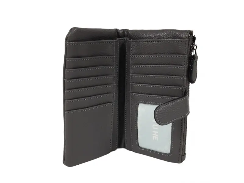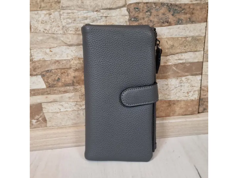 Poșetă mare pentru femei - Portofel de damă confecționat din piele ecologică. - Închidere cu un buton de clic. - Compartimente pentru carduri. - Compartiment pentru bancnote. - Buzunar pentru monede cu fermoar.