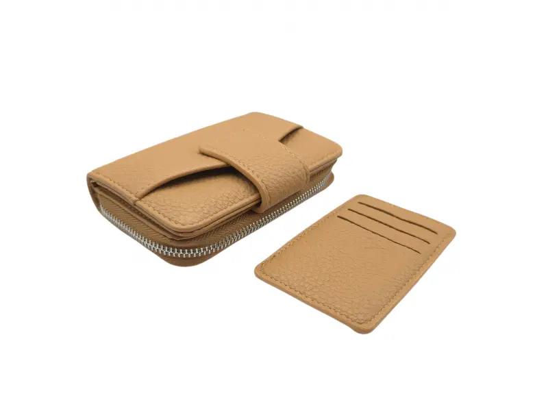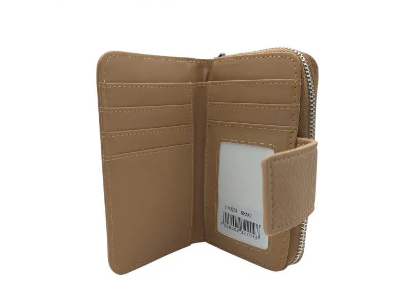 Poșetă de damă în culoarea maro la modă - Portofel de damă confecționat din piele ecologică. - Închidere cu un buton de clic. - Compartimente pentru carduri și documente personale. - Compartiment pentru bancnote. - Buzunar pentru monede cu fermoar.