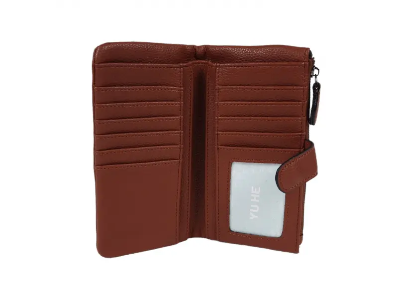 Poșetă mare pentru femei - Portofel de damă confecționat din piele ecologică. - Închidere cu un buton de clic. - Compartimente pentru carduri. - Compartiment pentru bancnote. - Buzunar pentru monede cu fermoar.
