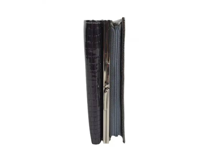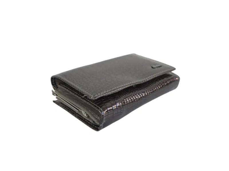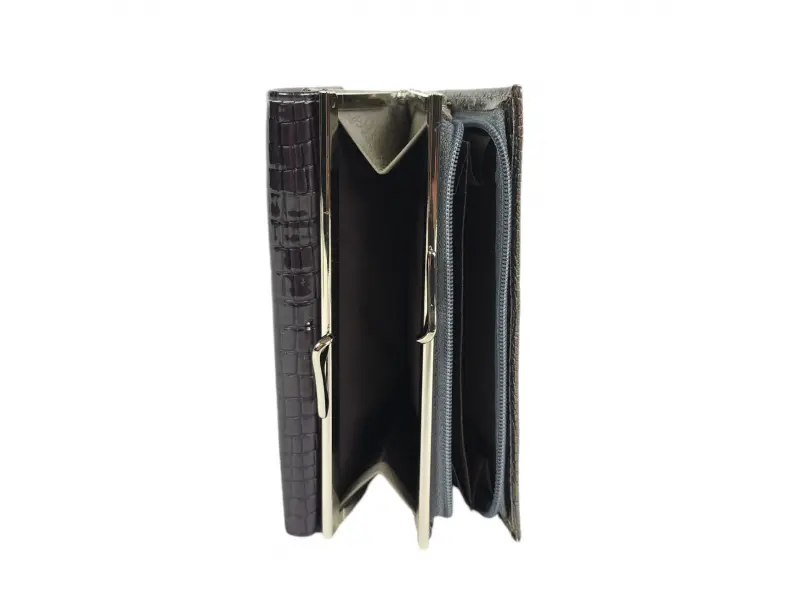 Poșetă elegantă pentru femei, de culoare argintie - Poșetă de damă confecționată din piele naturală și piele lăcuită. - Compartimente pentru bancnote. - Compartimente pentru carduri și documente personale. - Compartimente pentru monede cu clemă. - Compartiment pentru monede cu fermoar.