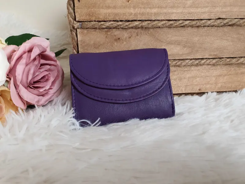 Poșetă medie mov pentru femei. Poșetă de damă de culoare mov intens, confecționată din piele naturală. Poșetă mov de înaltă calitate, cu spațiu pentru bancnote și monede - ePazar.bg