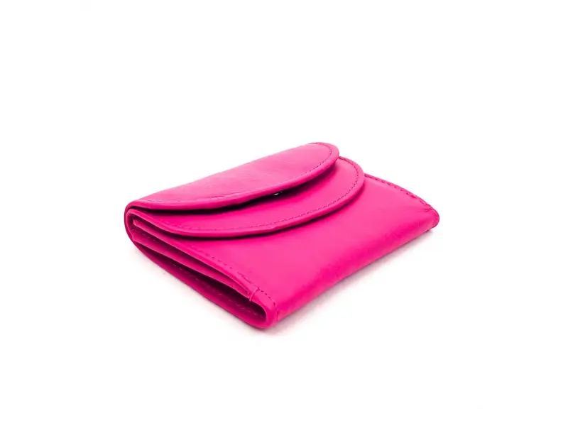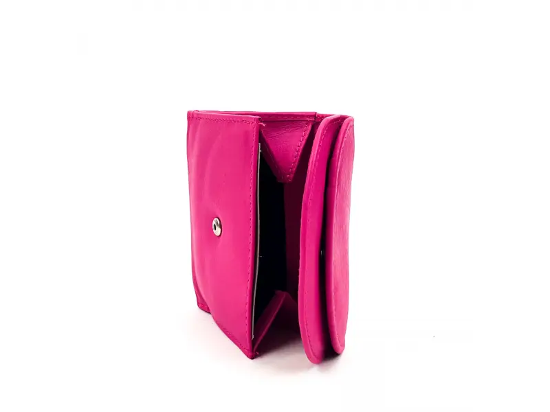 Portofel compact pentru femei, confecționat din piele naturală - naturală. Model convenabil chiar și pentru genți mici, cu spațiu pentru documente, cărți de vizită și cărți bancare, compartiment chiar și pentru cele mai mari bancnote de 500 de euro. Loc separat pentru monede. Portofel de damă de înaltă calitate, de culoare roz.
