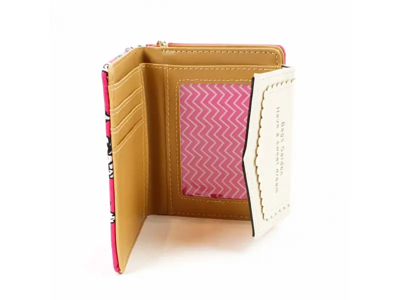 Poșetă mică din material ciclam - Garden. Poșetă compactă pentru femei, într-o frumoasă culoare ciclam. Poșetă confortabilă din piele ecologică, cu mult spațiu pentru carduri și un buzunar exterior pentru monede cu fermoar.