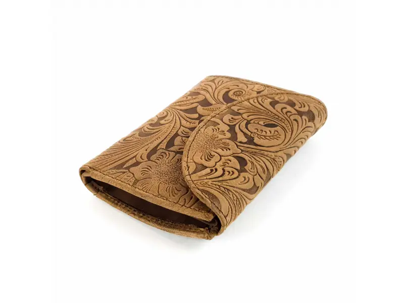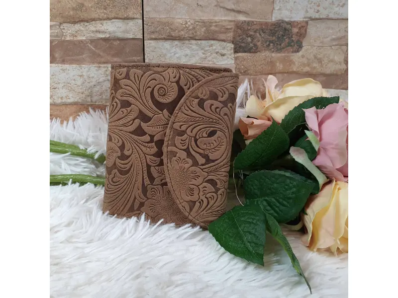 Poșetă mică maro - lucrată manual. Poșetă de damă lucrată manual din piele naturală. Poșetă maro cu flori și un design interior confortabil.