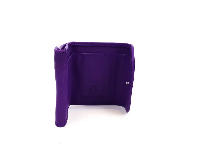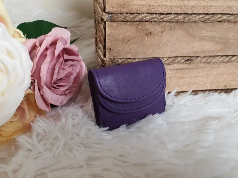 Poșetă mică de damă, confecționată din piele naturală de calitate, de culoare violet. Model convenabil de poșetă pentru genți mici de damă. Poșetă de damă de culoare violet, cu loc separat pentru monede și compartiment pentru bancnote.