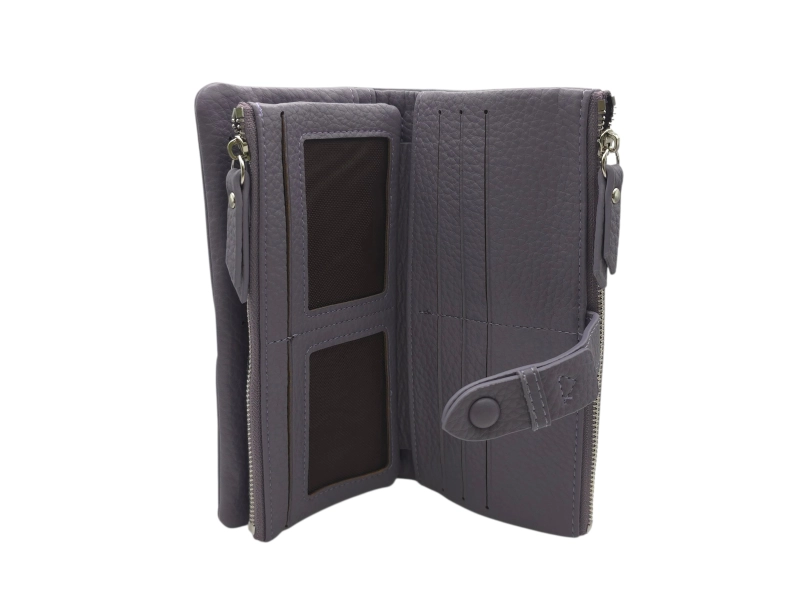 Poșetă de damă într-o culoare violet delicată - Portofel de damă confecționat din piele ecologică. - Închidere cu un buton de clic. - Compartimente pentru carduri și documente personale. - Compartiment pentru bancnote. - Compartimente pentru monede cu fermoar.