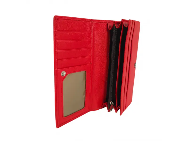 Cumpără acum un portofel roșu pentru femei, confecționat din piele naturală de calitate, la un preț redus. Portofel mare pentru femei, cu o dispunere convenabilă și multe sloturi pentru carduri și documente personale.