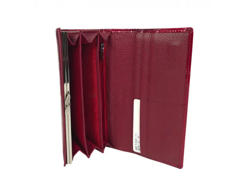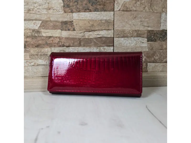 Portofel din piele lăcuită cu închidere magnetică - Poșetă de damă din piele naturală și piele lăcuită - Compartimente pentru bancnote. - Compartiment pentru monede cu închidere cu clip. - Compartimente pentru documente - Compartiment cu fermoar. - Buzunarul din spate. - Închidere magnetică.