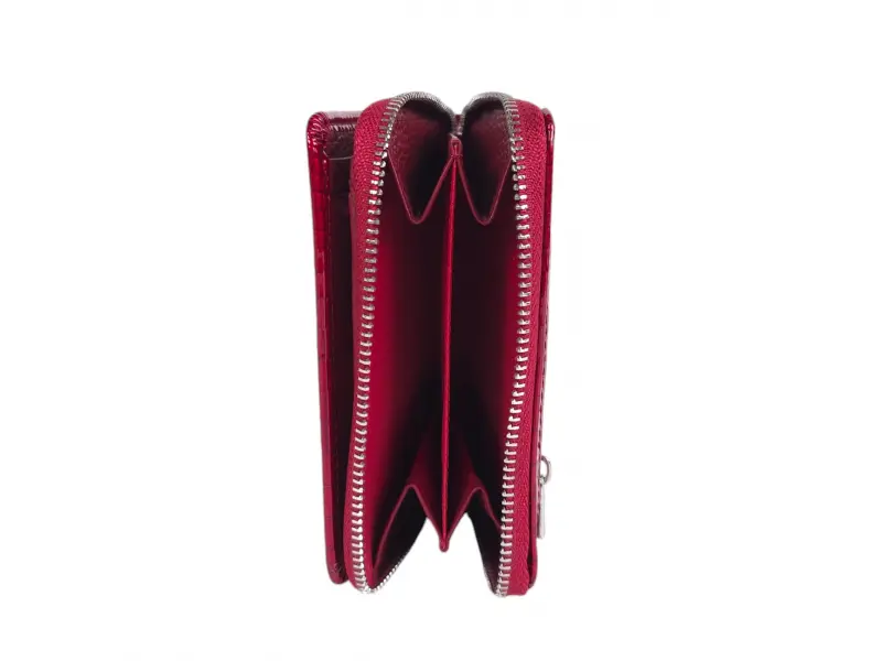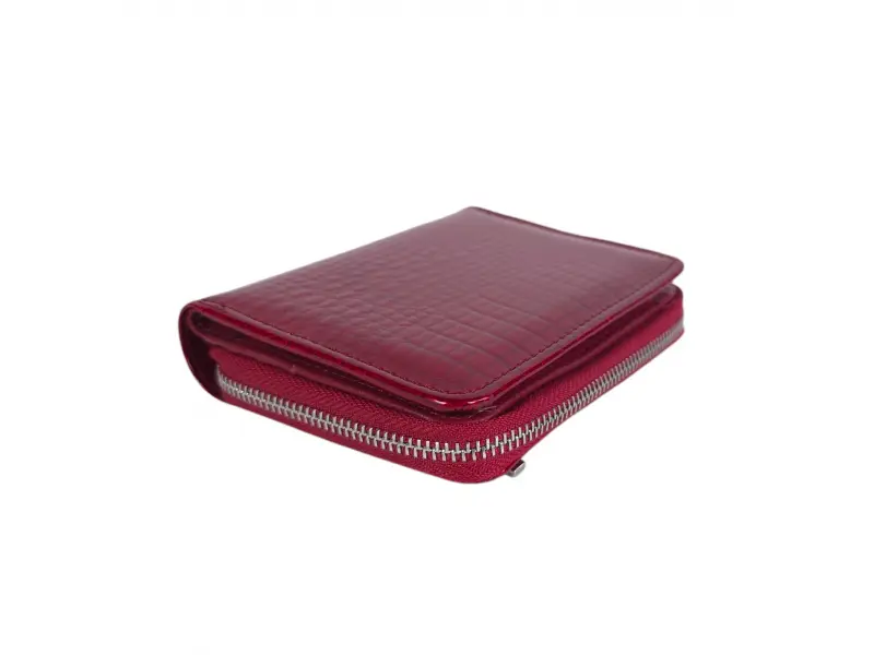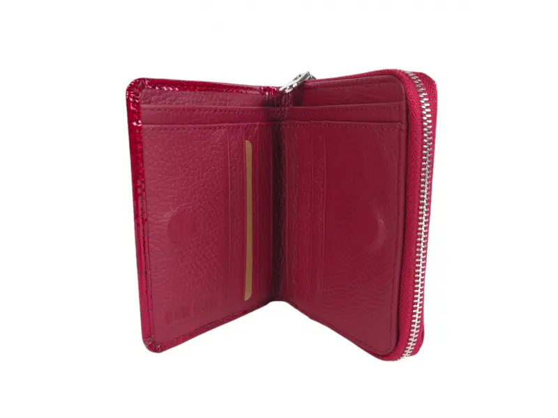 Portofel de damă de înaltă calitate, confecționat din piele naturală și piele lăcuită. Portofel clasic de damă cu compartimente pentru bancnote, sloturi pentru carduri și acte de identitate și portofel pentru monede cu fermoar. Portofel elegant de damă cu închidere magnetică.