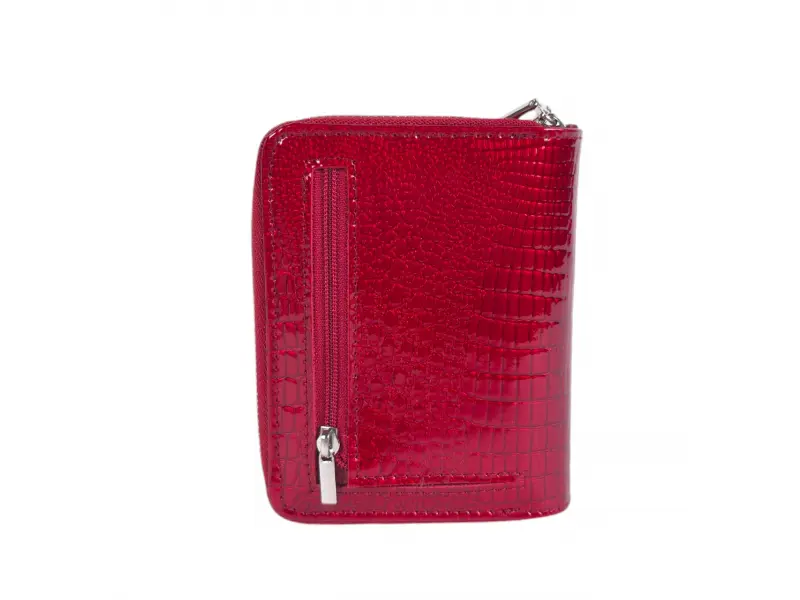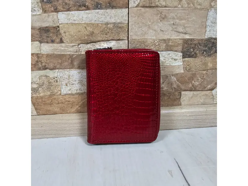 Poșetă compactă pentru femei - Poșetă de damă confecționată din piele naturală și piele lăcuită. - Închidere magnetică. - Compartimente pentru bancnote. - Compartiment pentru monede cu fermoar. - Compartimente pentru carduri și documente personale. - Buzunar spate cu fermoar.