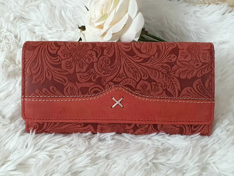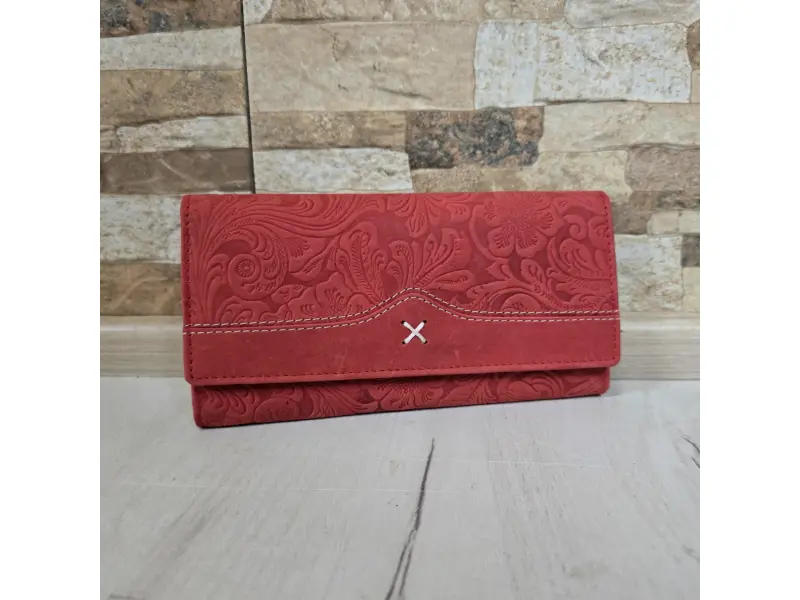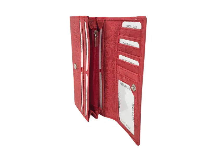 Poșetă de damă ștanțată manual - Poșetă de damă confecționată din piele naturală. - Închidere cu un buton de clic. - Compartimente pentru carduri. - Compartimente pentru bancnote. - Portofel pentru monede cu nasture. - Buzunar interior cu fermoar. - Buzunar spate cu fermoar.