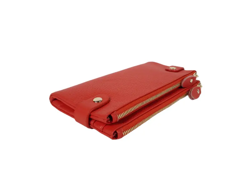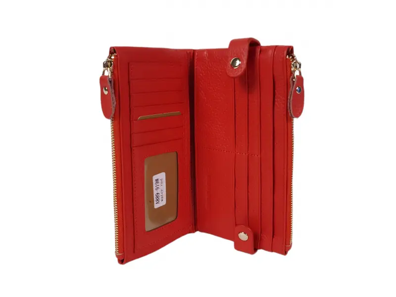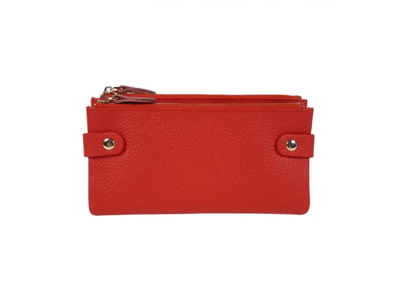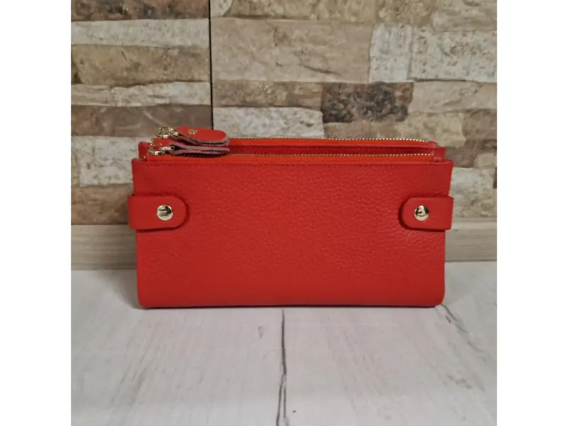 Poșetă interesantă pentru femei - Poșetă de damă confecționată din piele naturală. - Închidere cu nasturi tic-tac. - Compartimente pentru carduri. - Compartimente pentru bancnote. - Două buzunare cu fermoar.