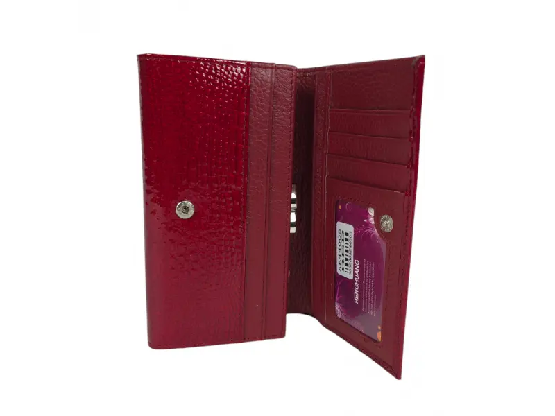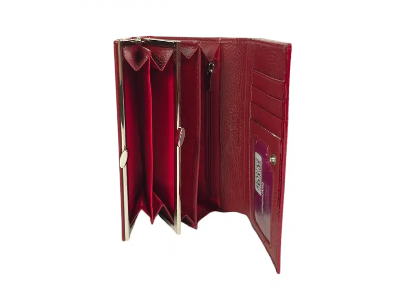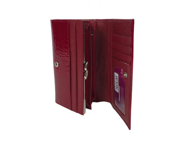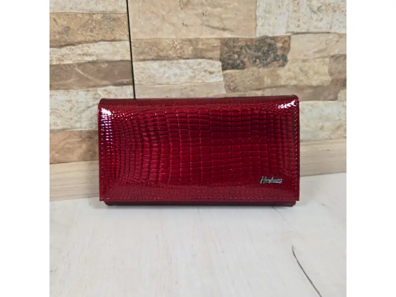 Poșetă confortabilă pentru femei din piele lăcuită - Poșetă roșie din piele naturală și piele lăcuită. - Compartimente pentru carduri și documente personale. - Compartiment pentru bancnote. - Compartiment cu fermoar. - Portofel pentru monede cu clips.