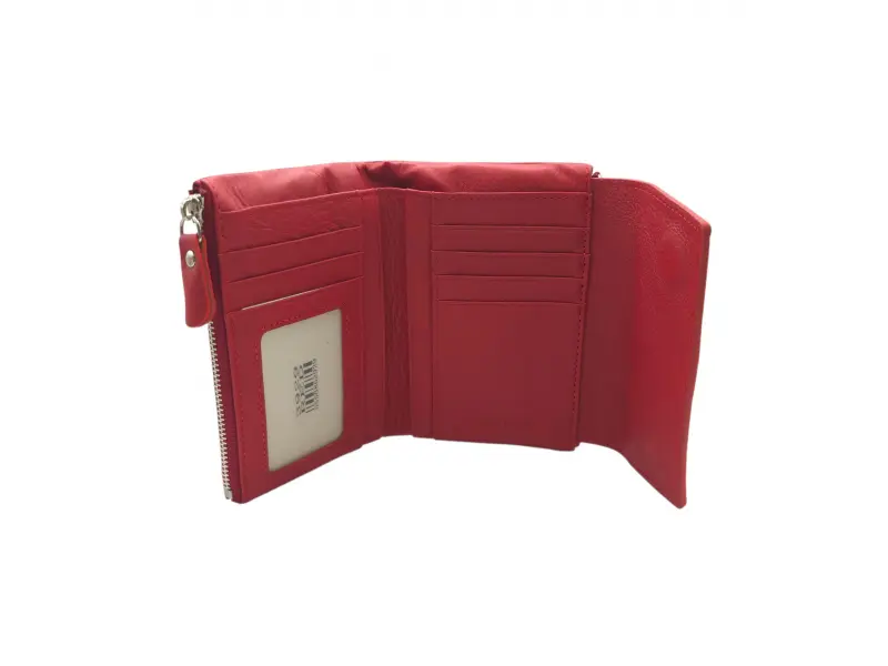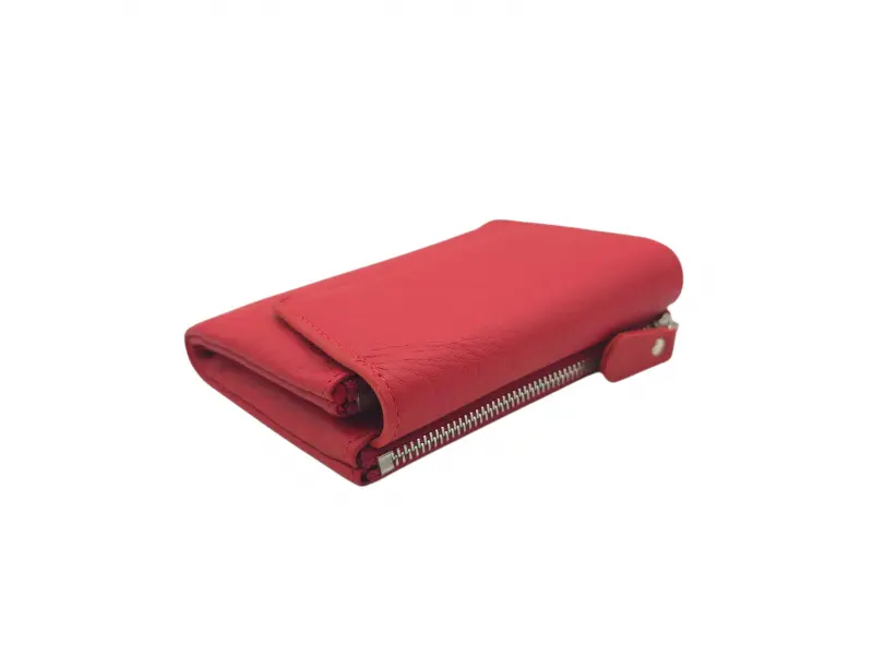 Poșetă medie pentru femei - Poșetă de damă confecționată din piele naturală. - Închidere magnetică. - Compartimente pentru carduri. - Compartimente pentru bancnote. - Compartiment cu fermoar. - Buzunar exterior pentru monede cu fermoar.