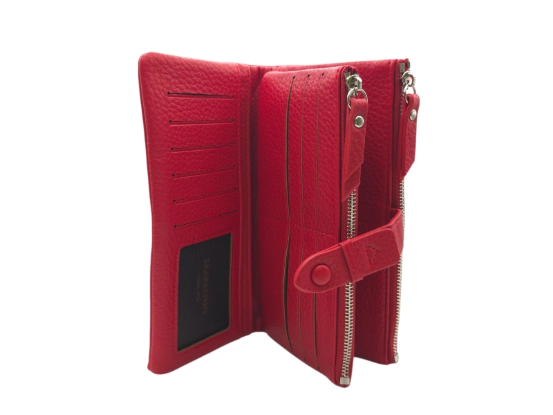Poșetă de calitate pentru femei - Portofel de damă confecționat din piele ecologică. - Închidere cu un buton de clic. - Compartimente pentru carduri și documente personale. - Compartiment pentru bancnote. - Compartimente pentru monede cu fermoar.