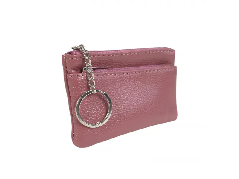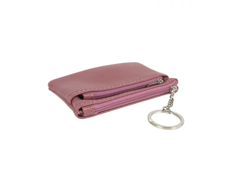 Breloc de calitate, de culoare roz - Poșetă din piele naturală cu inel de chei. - Compartiment pentru bancnote. - Compartiment pentru monede. - Inel de chei.
