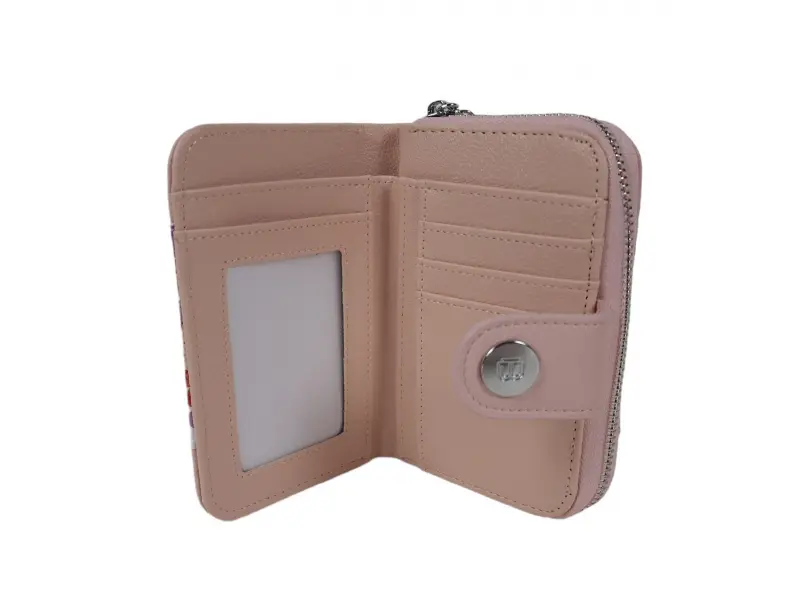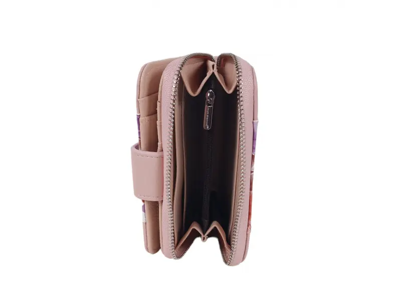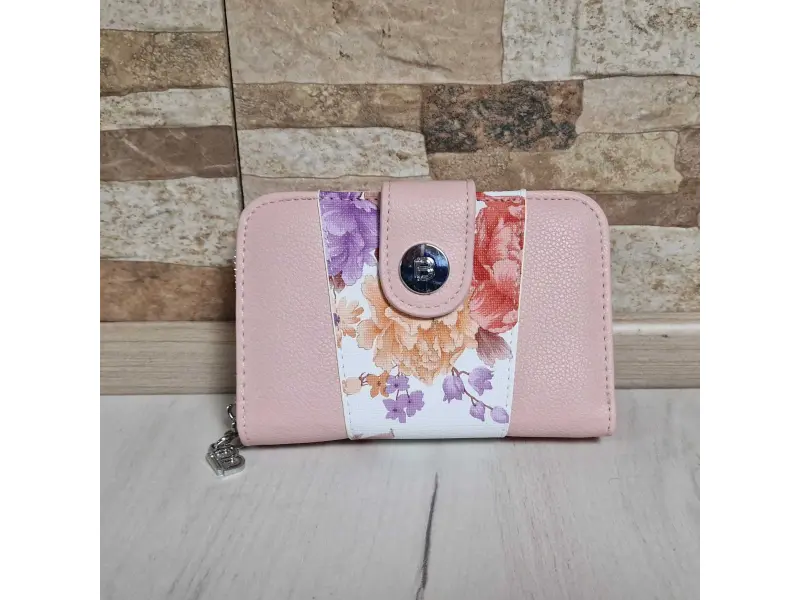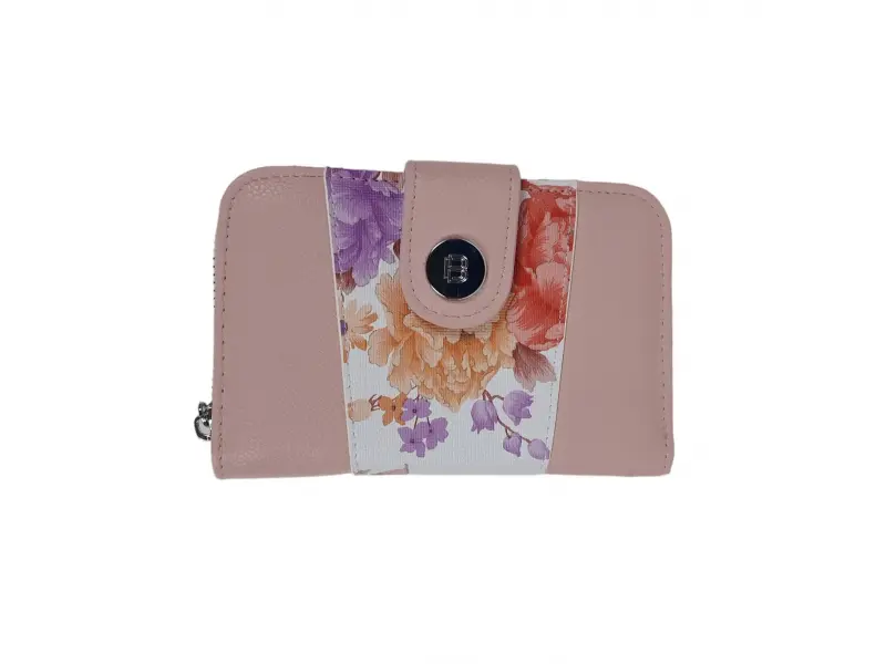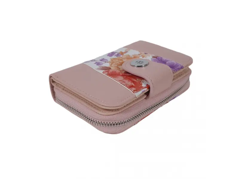 Poșetă elegantă pentru femei, în culoarea roz - Portofel de damă confecționat din piele ecologică. - Închidere cu buton magnetic. - Compartimente pentru carduri și documente. - Compartiment pentru bancnote. - Compartiment pentru monede cu fermoar. - Aranjamentul florilor poate fi diferit.
