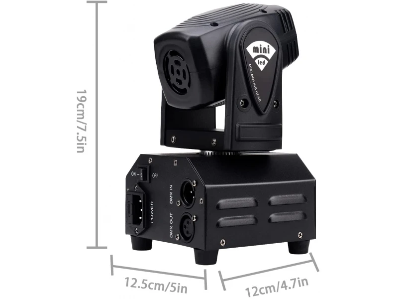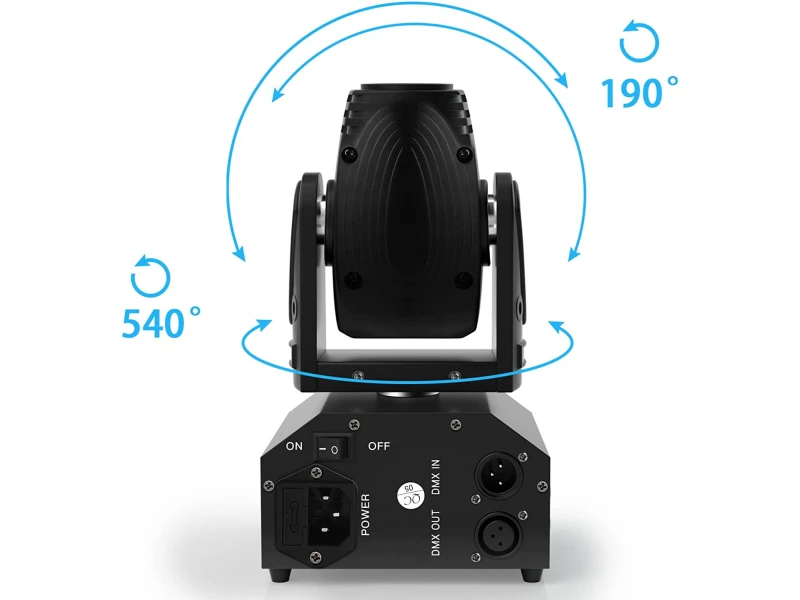 Funcții DMX: roată PGobo, TILT, Dimmer, curbă Dimmer, programe automate, Gobo Shake, PAN Mișcare PAN: 630° Mișcare TILT: 235° Bliț de mare viteză: 1Hz-20Hz