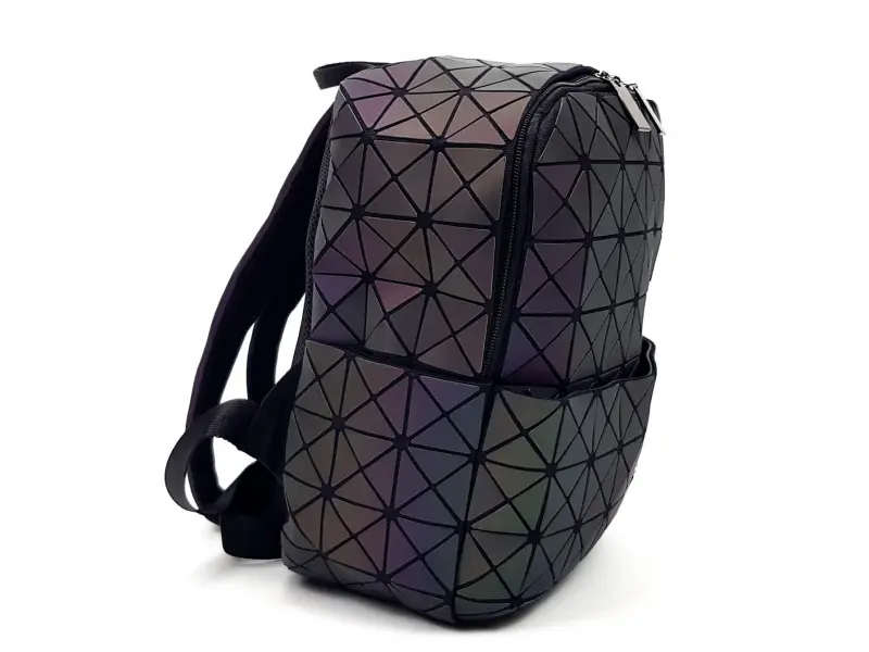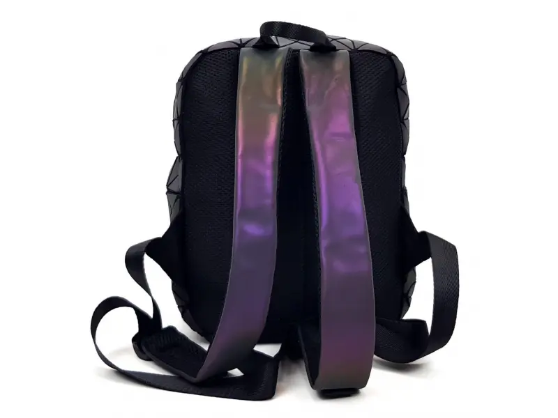 Rucsac grozav care își schimbă culoarea în funcție de lumină. Rucsac de damă - chameleon, mărime medie, cu un compartiment mare și un buzunar frontal. Bretelele de umăr sunt din material care își schimbă culoarea, ușor reglabile și au un mâner de transport.