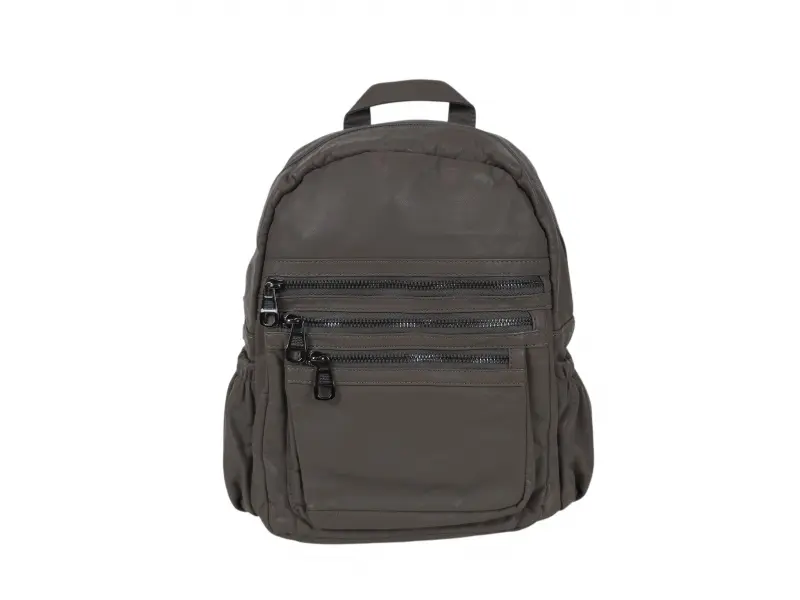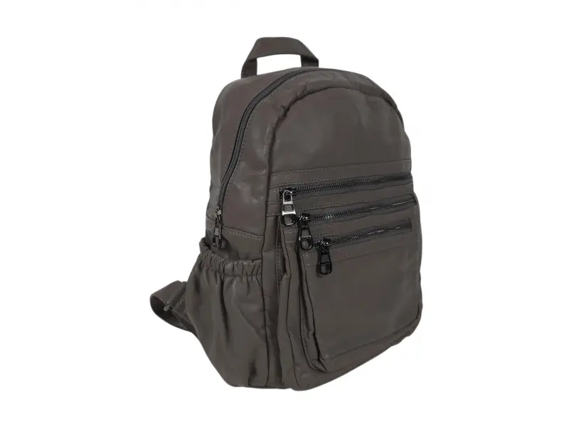 Rucsac de calitate pentru femei - Rucsac de damă din piele fiartă. - Un compartiment mare cu fermoar. - Buzunar interior cu fermoar. - Compartiment pentru telefon și documente. - Trei buzunare frontale cu fermoar. - Două buzunare laterale. - Mâner pentru transport în mână. - Bretele reglabile.