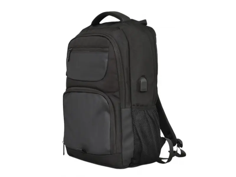 Rucsac potrivit pentru un laptop de 15,6 inch - Un compartiment principal cu fermoar. - Compartiment pentru laptop. - Două buzunare frontale cu fermoar, cel mare are patru buzunare. - Primul compartiment are trei buzunare. - Buzunar spate cu fermoar. - Cablu USB și port USB de încărcare. - Curea pe spate pentru atașarea la mânerul unei valize. - Două buzunare laterale din plasă. - Mâner ergonomic pentru transport în mână. - Spate confortabil. - Bretele reglabile cu buzunar cu fermoar.