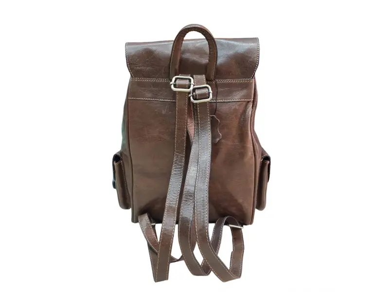 Rucsac marocan de calitate, lucrat manual. Rucsac maro închis din piele naturală de calitate, cu mâner confortabil pentru purtare în mână, compartimente frontale mici - ePazar.bg